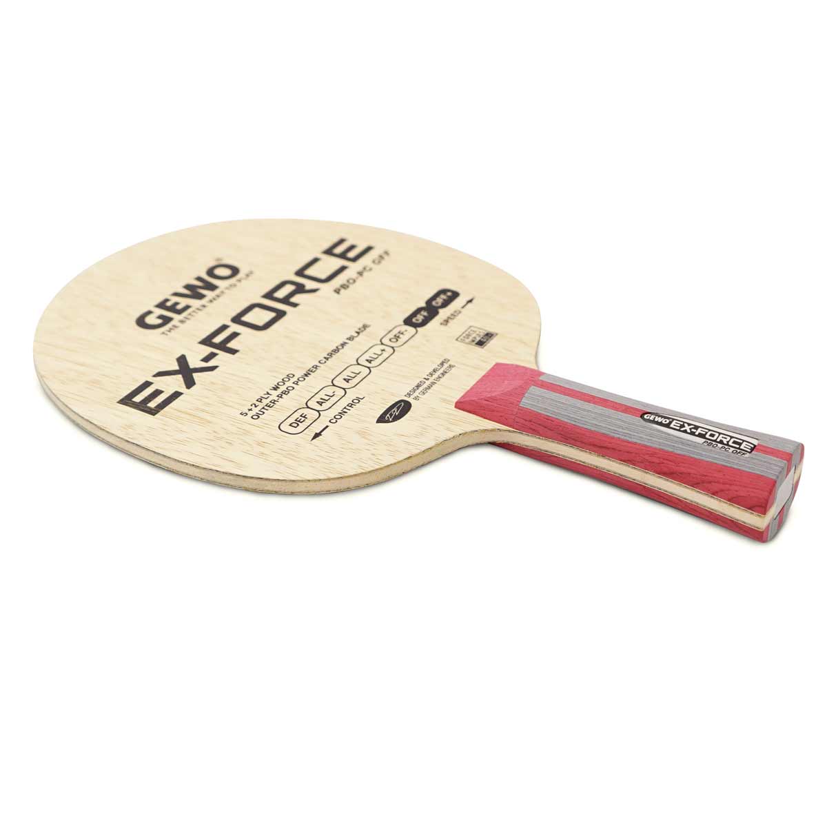 Het succesverhaal gaat verder! Het All begon in 2011 met Force ARC OFF en het verhaal wordt nu voortgezet met de nieuwe Gewo Force-serie. Nieuwe composities en materialen werden gecombineerd om te voldoen aan de eisen van modern, high-performance tafeltennis. De samenstelling van de populaire Force ARC OFF blijft ongewijzigd, terwijl de balans van het blad is aangepast aan de eisen die aan de modernste tafeltennistafels worden gesteld Frames.