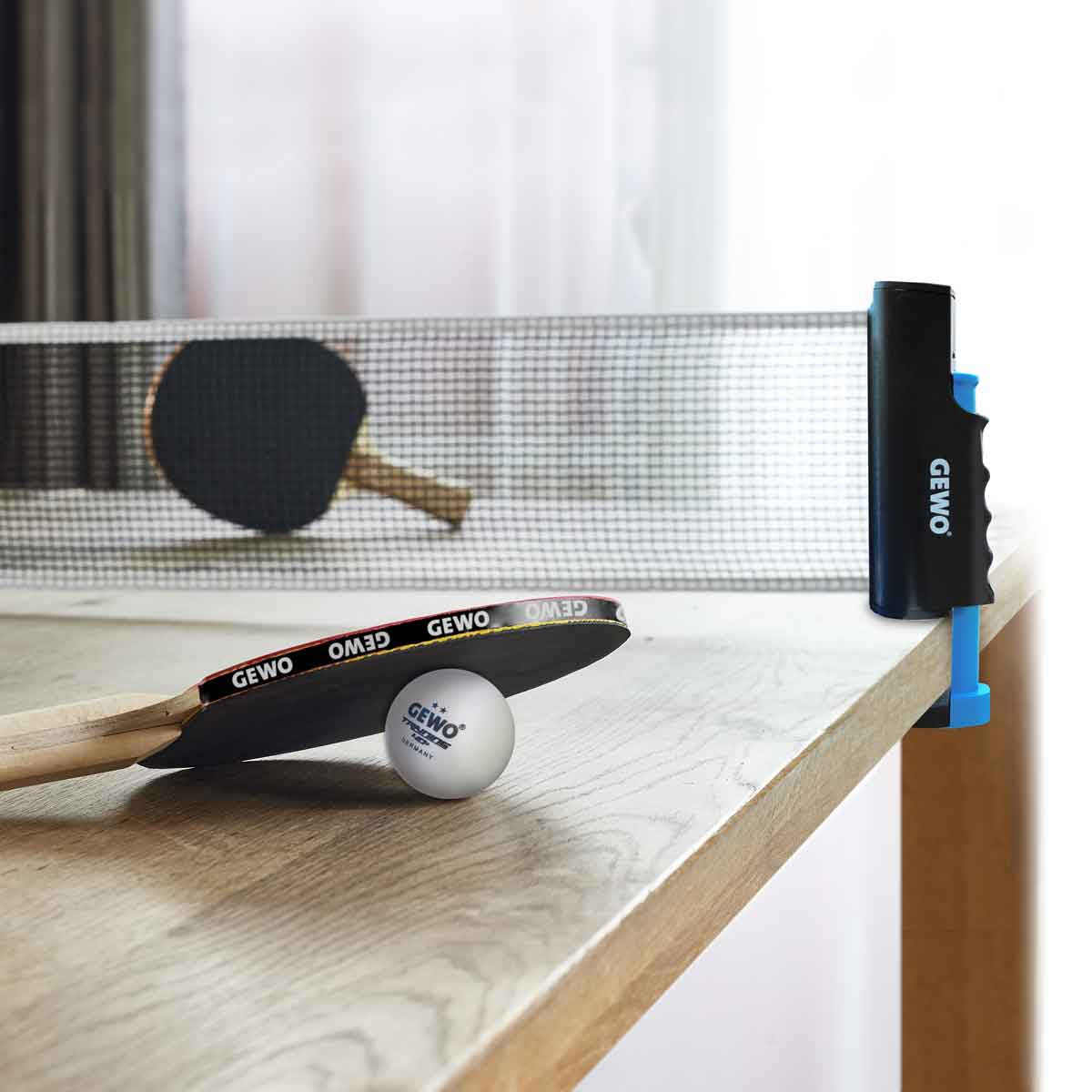 Gewo Net Flexx zwart - een robuuste, flexibele tafeltennistafel Net voor direct tafeltennisplezier, ook zonder tafeltennistafel.